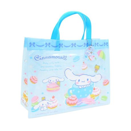 しっかりとした素材のビニールバッグ。水に濡れてもサッと拭き取れるので雨の日のお出かけバッグにしても◎