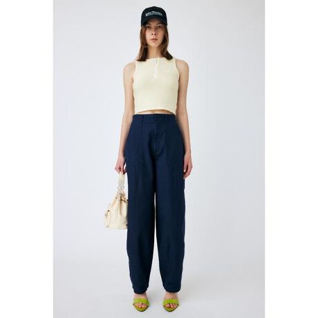 【WORK COCOON PANTS】トレンドのワークパンツを、トップスが薄くなってくる時期に着まわしやすいハリのある素材でお作りしました。コクーンシルエットは下半身のスタイルアップ効果もありサンダルとの相性もばっちりで、この夏大活躍間違いなしの一着です。