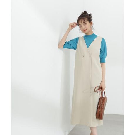 デザインを邪魔しないライト釦付きジャンパースカートは、程よく広がりを抑えたシルエット。首元は前後でシャープなVラインにして、レイヤードスタイルのスッキリ見せを叶えます。切り替えを利用したポケット付きも嬉しいポイントに。シンプルなニットや華やかなリボンタイブラウスとのコーディネートがお勧めです。
