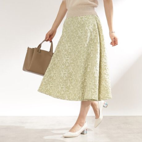 立体的な表面感が目を惹く膨れジャカード素材のスカート。