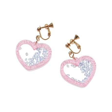 [型番:32021484]【デザイン】クリアなハートモチーフがポイントのイヤリング。ハートの中に入ってるビーズが揺れてとってもキュート!コーディネートのワンポイントにおすすめです♪