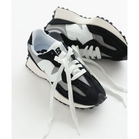 ニューバランスのレーシングシューズをアレンジしたレトロなフォルムに、ビッグNロゴを外側だけに配した印象的なルックスが人気の「U327」
