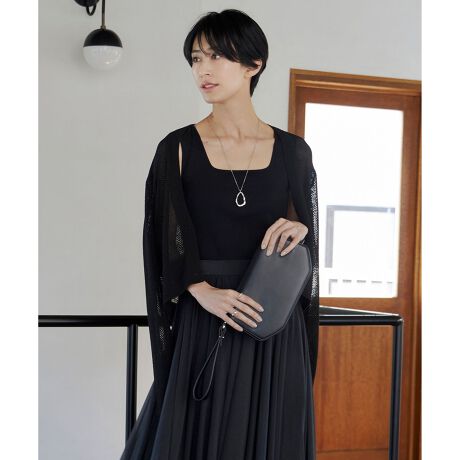 ■デザイン変形メッシュがニットならではの編柄カーディガン。軽くて透け感のある夏らしい素材ながら、コイルヤーンでモード感、高級感のある印象に。気負わずさらっと羽織れる様クロップトレングスに設定し、ボリュームのあるパンツルックスやワンピースにも合わせていただけます。インナーにタンクトップを着ていただくなど、クールでヘルシーなスタイリングもオススメです。
