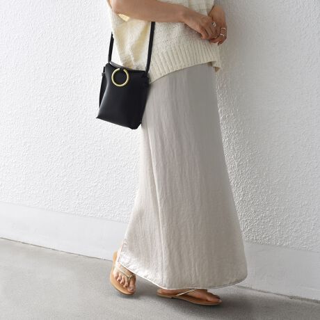 後ろスリットは素材の落ち感により、肌見せも上品な見え方です。