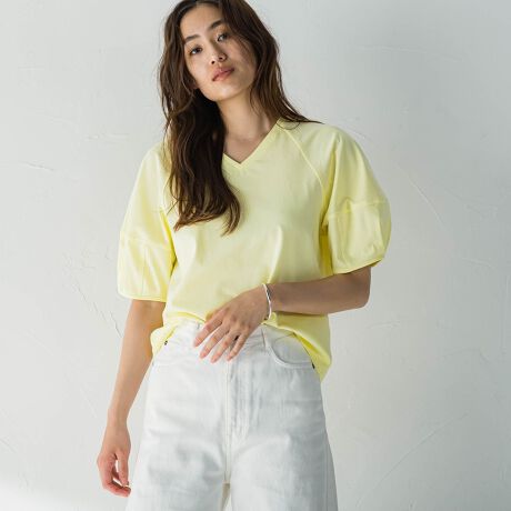 関連ワード:MAYSON GREY socolla メイソングレイ ソコラ 大人カジュアル 夏服 トップス 半袖 パフ袖 配色ステッチ
