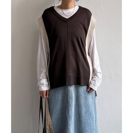 今年もトレンドとして注目されているサイドリボン付きのニットベスト。