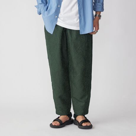 ポリエステルでありながらリネンのようなナチュラルな表情を出した薄手のジャカード素材を使用したイージーパンツ。
