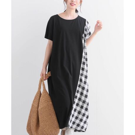 異素材バイアス切替カットワンピース