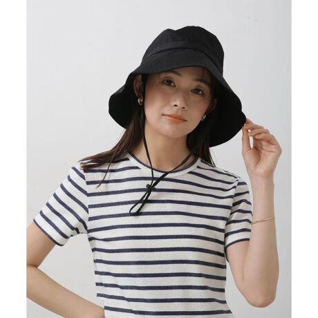 天然繊維のようなナチュラルな風合いに仕上げたポリエステル素材のハット。非常に長く設計したツバが特長で、優れた日差し除け効果を発揮。