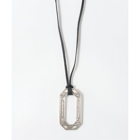 北アフリカの先住民族の言語で「Botam Sansalt/ボタム スンスルト」のネックレスです。 表面の文様は1刀1刀が手彫りで丁寧に彫られ、その文様にはそれぞれ意味があり、事物、物語、寓意などを象徴しています。 八角形のシルエットが印象的なデザインになり、全体に彫られた細かい文様が美しく存在感のあるネックレスになります。 目を引くデザインのため、シンプルなスタイルをはじめ様々なコーディネートのアクセントとしてご使用頂けます。紐にはあわじ玉を2つ付け、そのあわじ玉を移動させることで紐の長さを調節することができます。