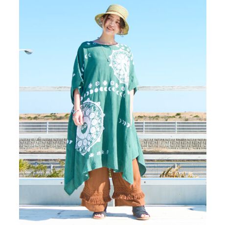 ゆったりとしたビッグシルエットで風が吹き抜けるよう。麻混素材で上品な素材感です。
