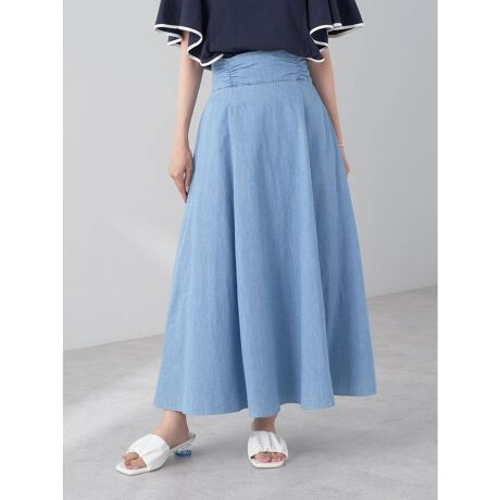 ウエストに寄せられたギャザーがやわらかい印象をプラスするスカート。