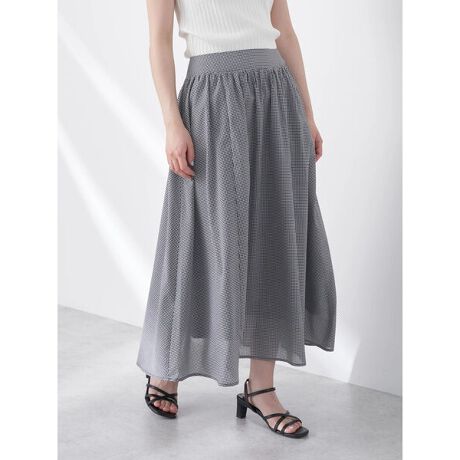 ギャザーの生み出す、ふんわりとしたフレアシルエットが可愛いスカート。