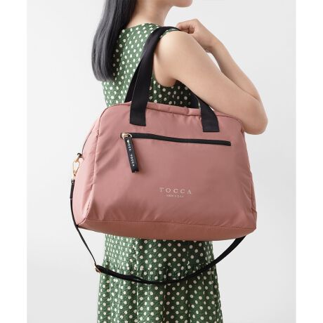 ライトな素材をチョイスし、驚くほどのボディーの軽さが実現。マチがたっぷりある大き目ボストンデザインは見た目以上の収納力で、内外にポケットも充実しています。肩掛けしやすい長めのハンドルのほか、斜め掛けできる取り外し可能なショルダーをプラスしているので、荷物が増えてもストレスフリー。素材がやわらかく、荷物を入れないとかさばらずスーツケースなどにしまって持ち運べるのも便利です。