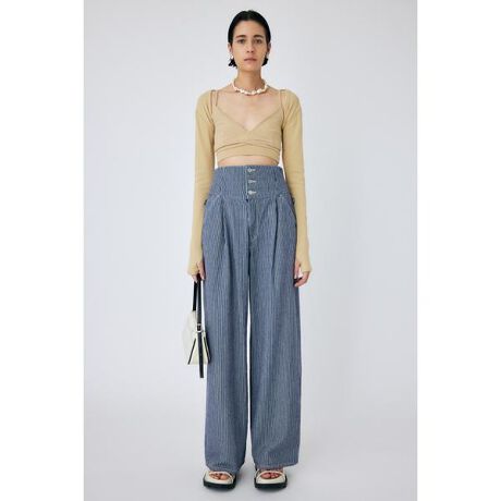【CORSET DESIGN WIDE STRAIGHT】ウエストのコルセットデザインがポイントのワイドストレート。夏に穿きやすい様に、ワイドシルエットに仕上げ、ウエストのラインを細く強調して見える様にデザインしています。コルセット部分を折り返し、腰にアクセントをつけ着用して頂く着こなしもおすすめです。本品は、素材特性上以下の点にご注意ください。・着用や洗濯につれ退色し、独特な色変化が生じる可能性がございます。・雨や汗等の湿った状態、着用や洗濯、クリーニングによって他の衣類、雑貨、家具等に色落する恐れがございます。・白・淡色との組み合わせはお避け下さい。・淡色は光(紫外線)に弱いため変色する場合がございます。直射日光や蛍光灯の光に長時間さらさないようご注意下さい。・クラッシュやダメージ加工の製品は、着用や洗濯につれて加工箇所の広がりが生じる場合がございますが予めご了承下さい。・着用や洗濯につれ多少の縮みやネジレ(製品がねじれて見える状態)が生じる場合がございます。・ボタンやリベットなどの金属部分を使用している場合は突起部分で人体や対象物にキズを負わせる恐れがございますのでご注意下さい。ストレートデニム