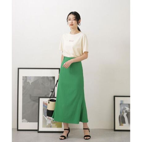 着るだけでスタイルアップが叶うきれいめな印象のスカート。すっきりしたストレートシルエットのフロントに対して、後ろはフレアラインに仕上げた前後で変化を楽しめるデザイン。シンプルでブラウスやTシャツ等どんなアイテムにも合わせやすく、通勤から休日のお出掛けまで幅広く活躍します。