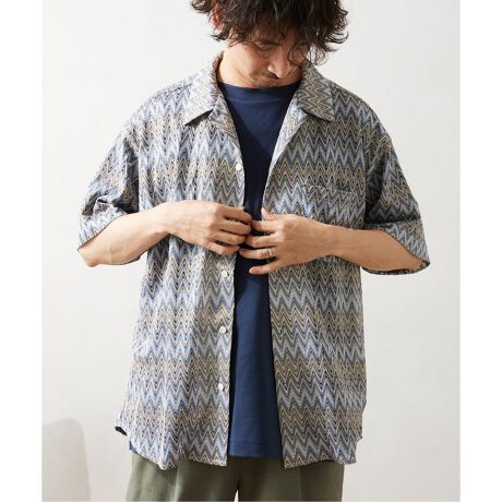 ざっくりとした編み目のメッシュ編みによる涼し気なシアー感とジグザグ模様のカラフルなストライプがデザインポイント。
