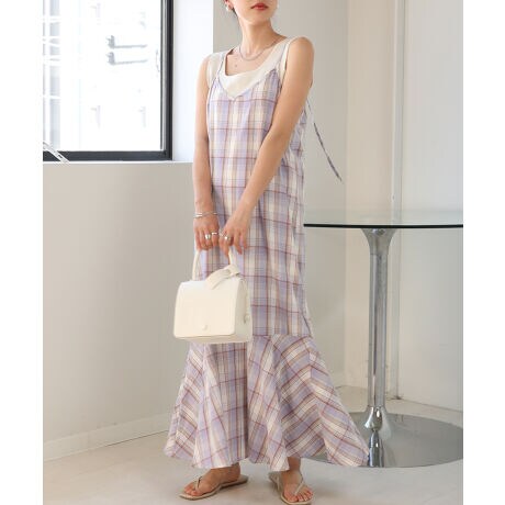 大胆なチェック柄が魅力的なキャミワンピース。色によってチェックの柄が違います。夏らしい着るだけで気分が上がるカラー使いもポイントです。