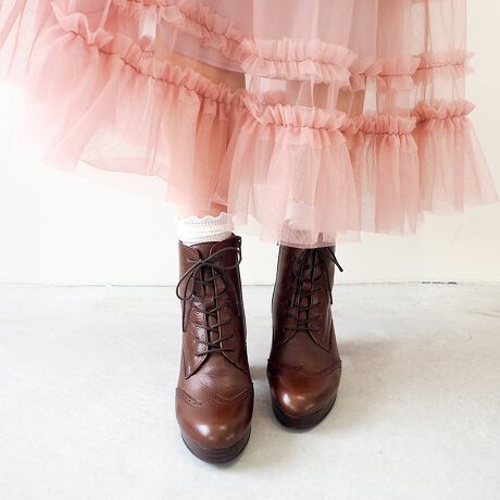 あしながおじさんらしい、ストーム&ヒールのボリューム感が魅力のショートブーツ。