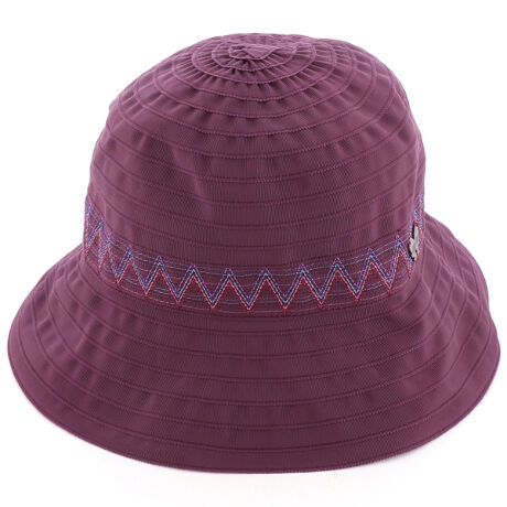 カラフルなジグザグステッチが目を引くデザインのグログランクロッシェ。しわになりにくく柔らかい素材なので持ち運びにも便利で旅のお供にもぴったりです。つば先にはワイヤーが入っているので、つばの上げ下げ自由自在。おでこに当たる汗止めすべりにはファンデーションの汚れが落ちやすい抗菌・防臭素材を使用し、サイズ調整も可能です。