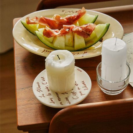 複雑にもつれた頭の中を空にして、しばらく自分だけに集中してリラックスした時間を持つ夢想家たちの話をフランス語でハンドライティングした陶器製のトレイです。キャンドルを載せてもいいし、石鹸や各種アクセサリーなどをための小物用として活用度の高い多用途トレイです。