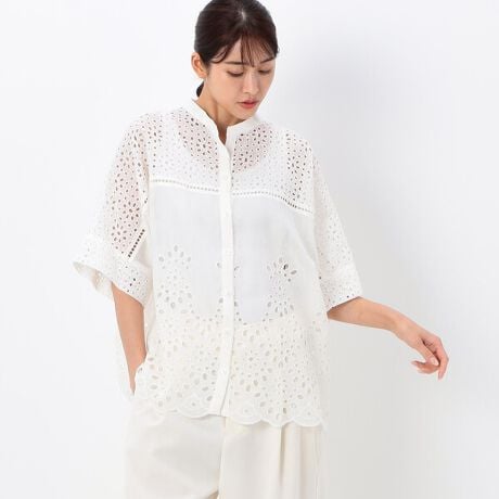 【洗える】アイレットレース ドルマンスリーブブラウス