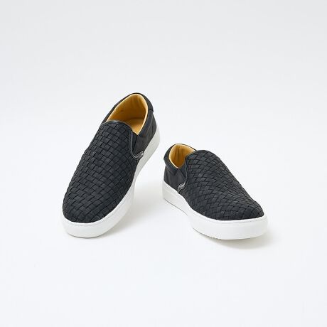 格子状の編み込みがベーシックなカラーリングながらアクセントとして機能し、シンプルなコーディネートにもマッチします。メッシュは型押しではなく、アッパー材を細く裁断して編み込んであるリアルメッシュです。履き口にはクッションを効かせており、快適な履き心地を実現しています。サメの歯のようにギザギザと凹凸のあるシャークソールで濡れた地面でも滑りにくい仕様になっています。履き口サイドのエラスティックで着脱しやすいのもポイント。