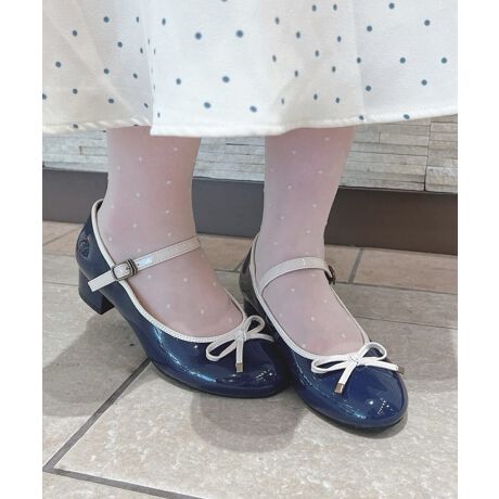 ツヤっとしたエナメル素材と細いリボンが甘すぎずレディライクな印象に♪