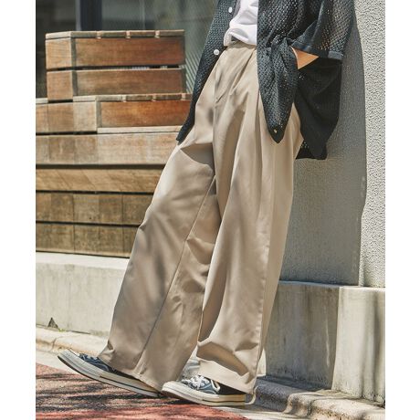 カットソー、シャツを初め、ニットやジャケットなど普段のアイテムと合わせるだけでもこなれた今っぽい雰囲気に。ウエストタックが入っているので、カットソーをタックインしたスタイルもキレイなシルエットに決まります。合わせるシューズはスニーカーはもちろんのこと、ブーツを合わせた着こなしもおすすめです。