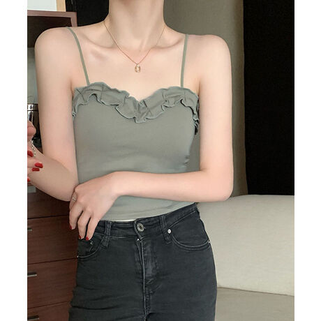 インナーキャミで大活躍。フリルデザインがアクセントになったショート丈のカットソーキャミソール。