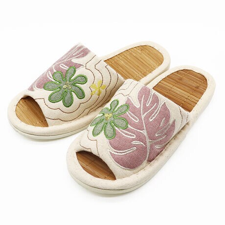 ハワイアンキルト ビックモンステラ茶竹スリッパ Mサイズ新生活 ルームシューズ