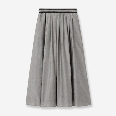 シアー生地に細やかなボーダーラメ糸が入った細かな繊細なスカート。ギャザー寄せデザインのおかげで単調にならず、動くたびにふんわりと揺れるシルエットが可愛い一枚。