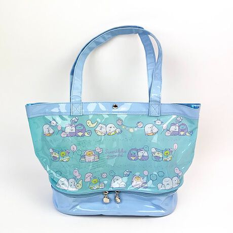 すみっコぐらし ポケット付きビニールトート バッグ サマー アウトドア プール ブルー