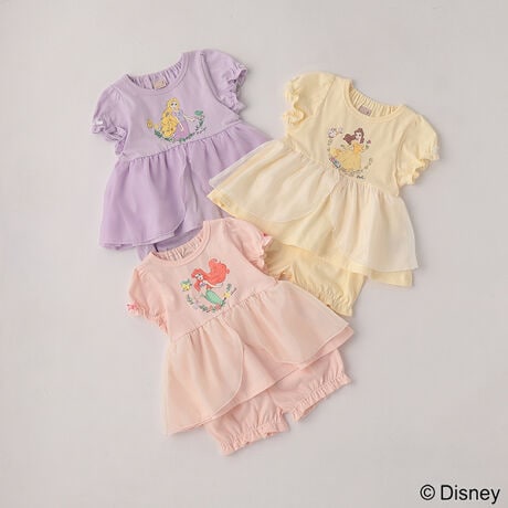 ディズニープリンセスのデザインをあしらったパジャマです。Tシャツには箔チュールプリントをドッキングしてフレアなシルエットを作りました。袖にゴムを入れてフィット感をプラス。ボトムスはゆとりのあるリラクシーなはき心地です。おうち時間がより楽しくなるおしゃれなアイテム。内側にはお名前を記入できるタグつきです。カラーによってプリントデザインが異なります。【おすすめの着用時期は春夏シーズン】【透け感】透けない【生地の厚さ】普通【伸縮性】あり【裏地】なし【ポケット】なし【アジャスター】なし