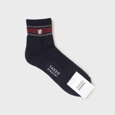 [型番:07007722]【デザインポイント】足底とパイル仕様にすることでクッション性があり、快適な穿き心地に。秋色のラインを入れたスポーツテイストソックス。ミドルゲージで程よい肉感。