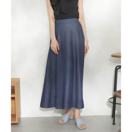 体のラインを綺麗に見せてくれる美ラインが魅力のフレアスカート。しなやかで綺麗なツヤ感はテンセル(TM)デニムならではの風合いで上品な印象の一枚。揺れ感が楽しめる軽やかさもテンセルデニムの特徴で、カジュアルスタイルも上品に仕上げてくれます。同素材のブラウスと組み合わせたワンピース風の着こなしもおすすめです。