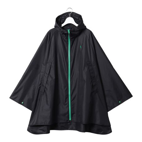 ブランドアイコンのポロプレイヤーとトリミングカラーがアクセントになったレインポンチョです。