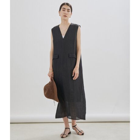 【ワンピースとしてもジャンパースカートとしても着られる、シルク×リネンの落ち着いた素材感がポイントのワンピース】