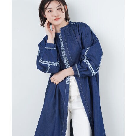 ワンピースとしての着用はもちろん、羽織りとしても活躍してくれます。比翼仕立てで刺繍をきちんと見せて釦を隠せるので、ベルトを使ってコーデをアレンジするのも◎
