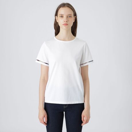 袖口にあしらったクレストブリッジチェックのラインがポイントのカットソーです。