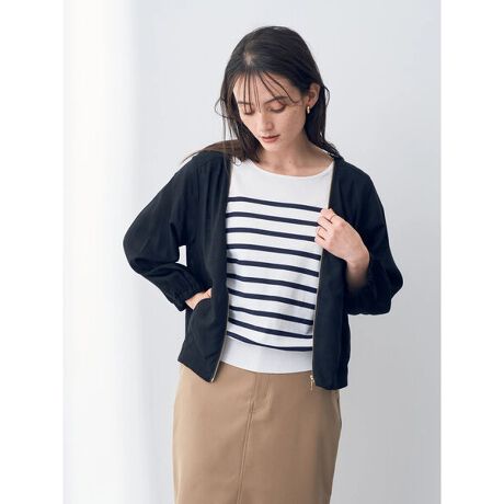 シンプルなルックスで幅広く活躍してくれるレーヨン麻ZIPジャケット。