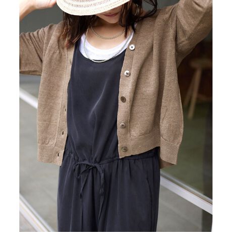 幅広いアイテムにハマるカーディガンです。