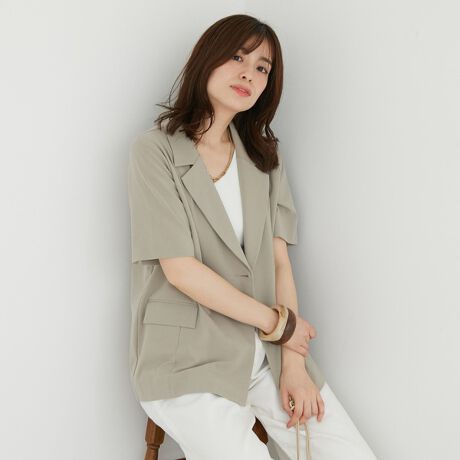 ・リネンライクな素材がジャケットでも軽やかさがでます