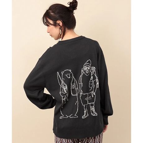 背中にキャンプを楽しむおじさんクマさんが描かれた、ゆる〜いデザインが魅力の一枚。