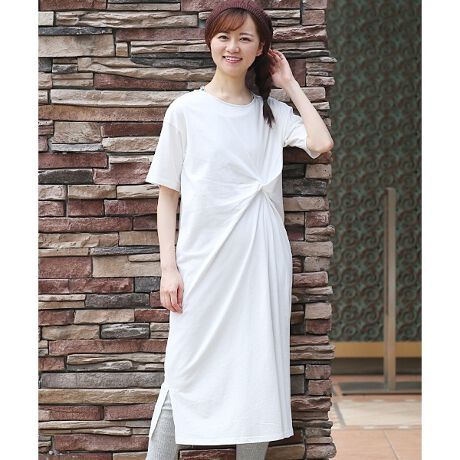 ゆったりなのに、すっきり見えるシンプルなワンピース。