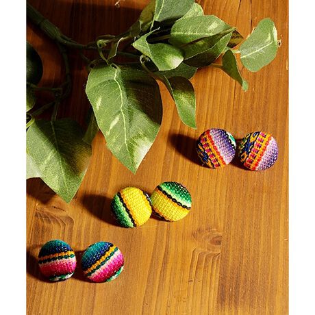 見ているだけでも元気をもらえるカラフルなペルー生地をボタンモチーフにしたイヤリング。