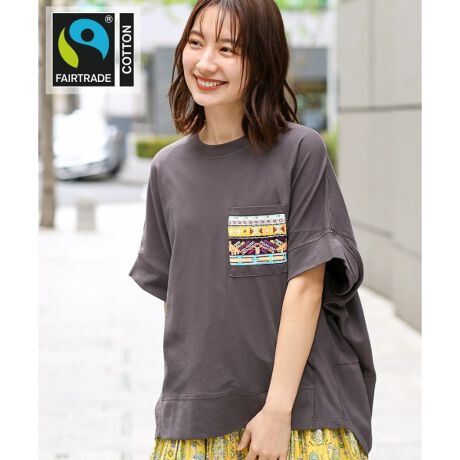 フェアトレードコットン ポケット刺繍プルオーバー
