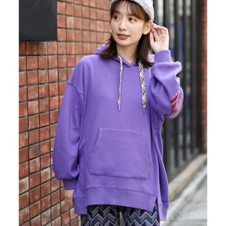 カラーによって異なる、肘の華やかなジャカード生地とカラフルなドロストがアクセント。