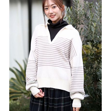 襟付きニットプルオーバー