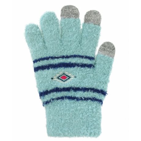 ボーダーと刺繍を組み合わせた、寒色使いのふわふわ手袋。